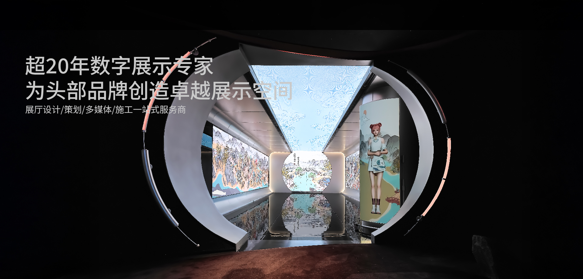 白云国际机场综合服务大楼企业文化展厅以“大国枢纽,传奇之路”叙事,从通达四海的使命出发,呈现机场在中国现代化中不断演进,成为连通全球链接未来航空引擎。